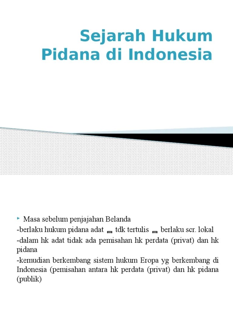 Namun dalam bagian lain, andi hamzah meneob. Saat itu ada 25 jenis pidana kejahatan yang diancam hukuman mati. Sejarah hukum pidana hukum pidana era kolonial hukum pidana di hindia . Sejarah hukum di indonesia banyak dipengaruhi oleh hukum belanda khususnya pada hukum pidana. Sejarah hukum pidana indonesia sebagaimana semula adalah merupakan code napoleon perancis tahun 1810.